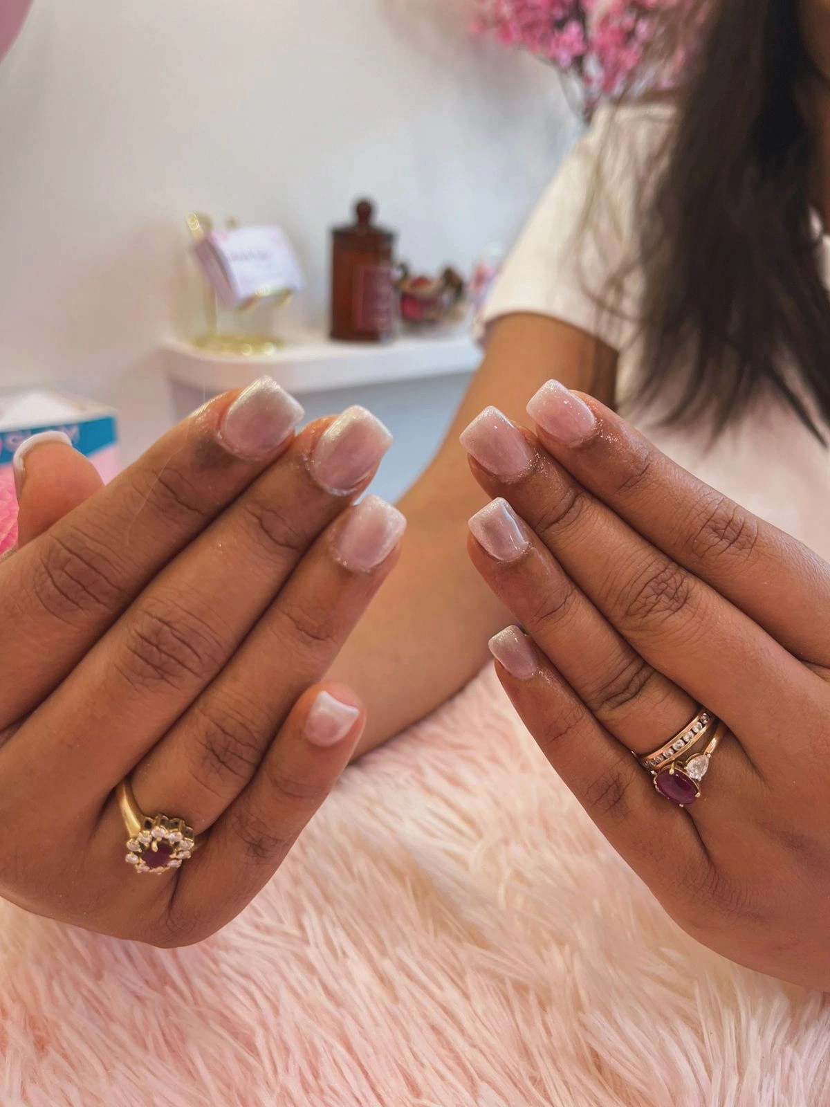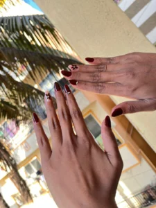 I’m someone who bites nails. She shaped them and gave me a soft pink finish that looks classy, not fake.