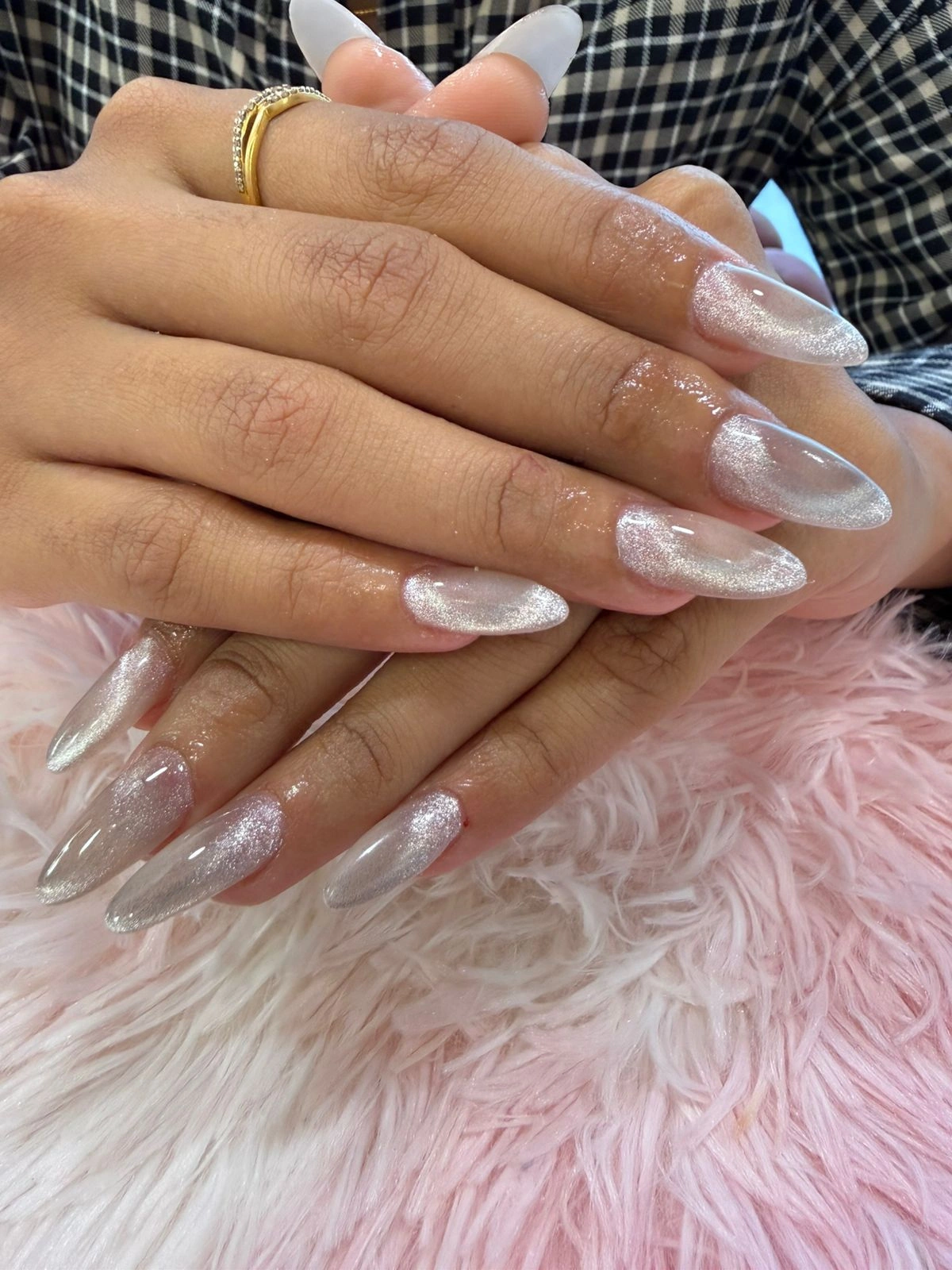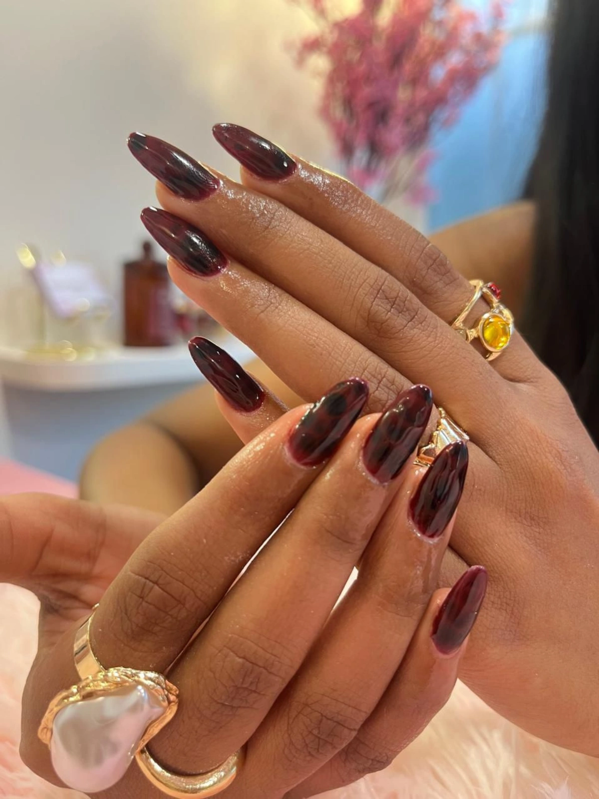 She did chrome, marble, and tiny stone work on my nails in one sitting. It looks like Pinterest but real.